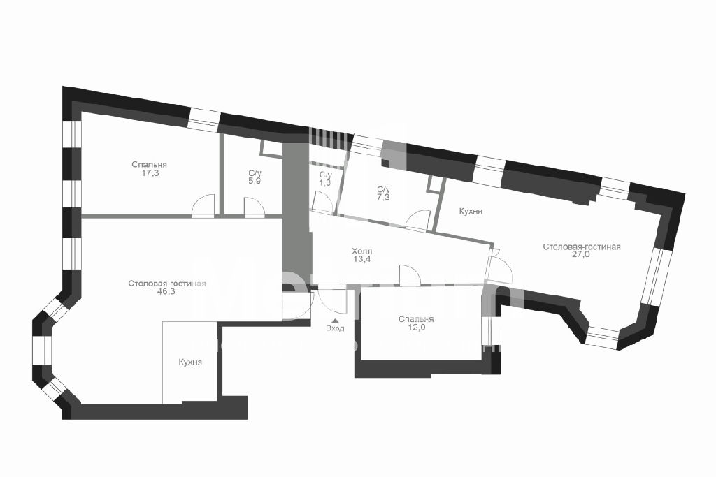 ID 12170 Предлагается 4-комнатная квартира без отделки в жилом комплексе Полянка/44.