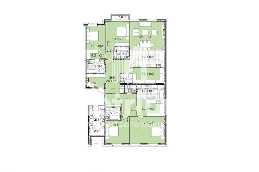 ID 24954 Предлагается 5-комнатная квартира без отделки в жилом комплексе Полянка/44.